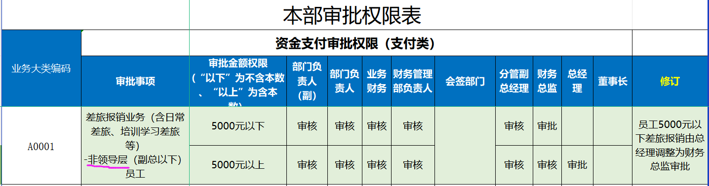 报销人非领导层的,5000元以下审批到财务总监,5000元以上审批到总经理。
