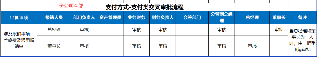 总经理 = 董事长 【同一人时候】 ,由一把手B角审批。