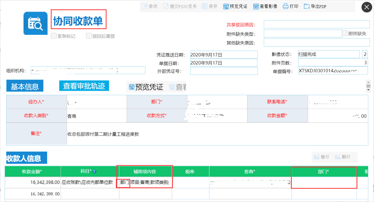 [bug]协同收款单收款人子表科目不会校验部门辅助 发布于 2020-09-25 172 次阅读 协同收款单, 收款人信息子表, 需填辅助项有部门档案, 但是不填也能正常保存并一路审核通过,计划任务报错日志发现多笔该类型单据, 没有控制住[第2天已解决]