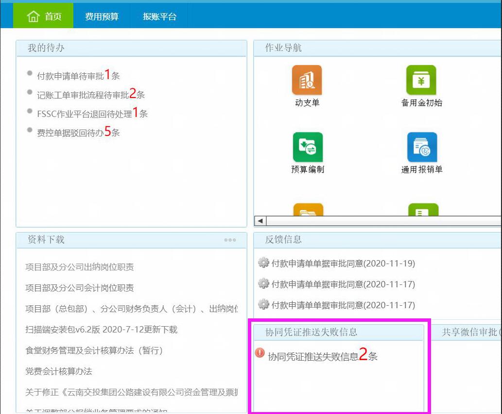 经过多方努力,已于11月20日在久其研发和实施的配合下,最终实现了协同单据推送失败的报错信息在首页直接提醒提单人。