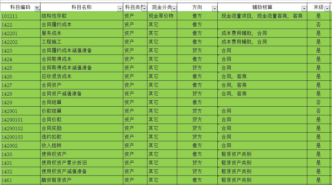 1-4:元旦收假,我方在NC系统导出2021年新会计科目体系,根据新版表格配置,变更如上图。