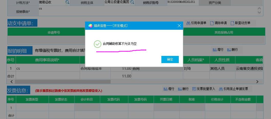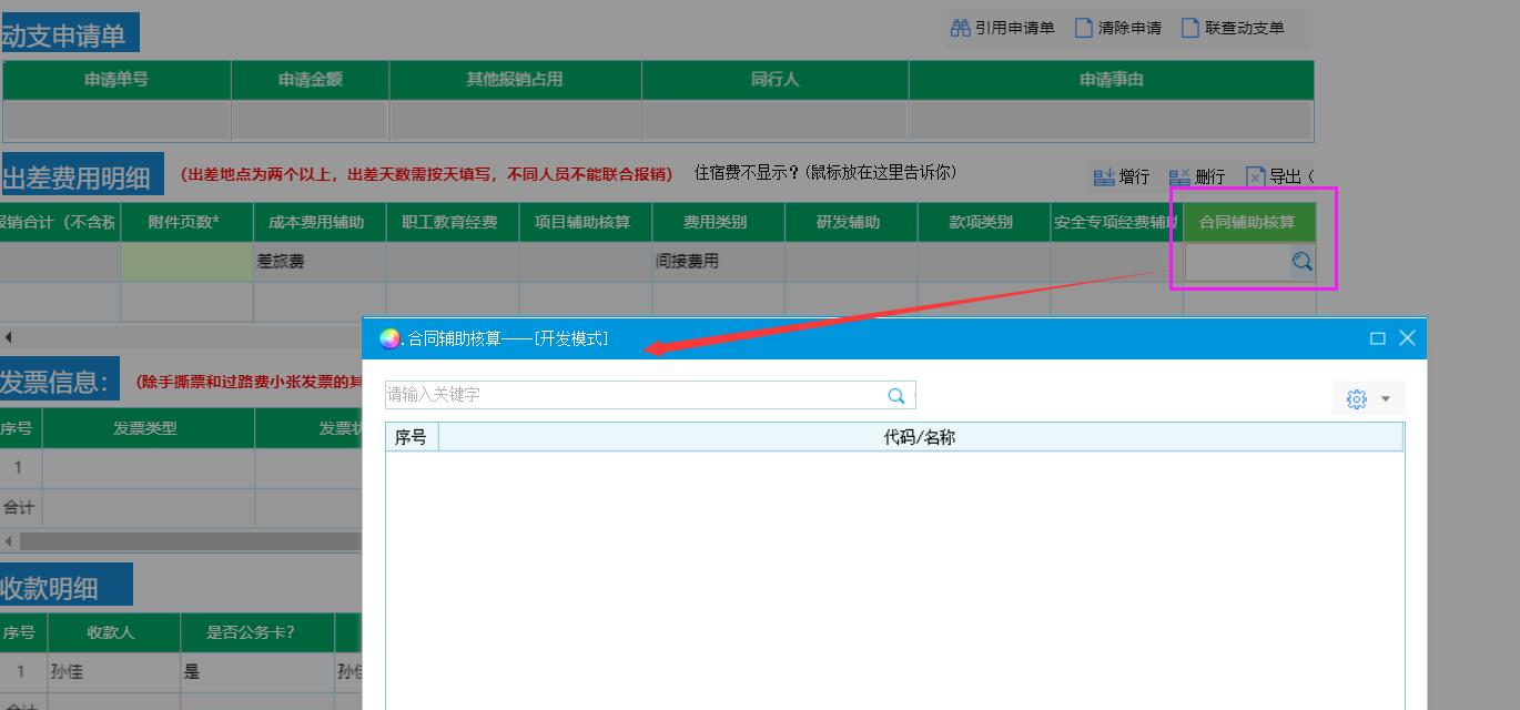 1-11:开始测试, 发现合同辅助核算表不是层级表,需要更改。