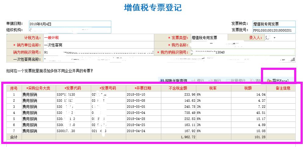 老系统的专票登记管理子表列表增加了 导出excel 功能, 方便税务专员的使用