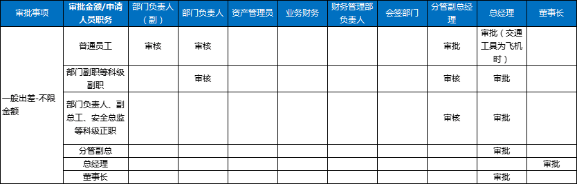 2. 审批流程的变更: 原 通过金额来判断的条件:5000以下到副总,5000以上到总经理 , 去掉金额后改为: 根据申请人的审批节点岗位来判断,并去掉业务财务,财务负责人的审批(因没有了金额和预算,不再需要财务过了)